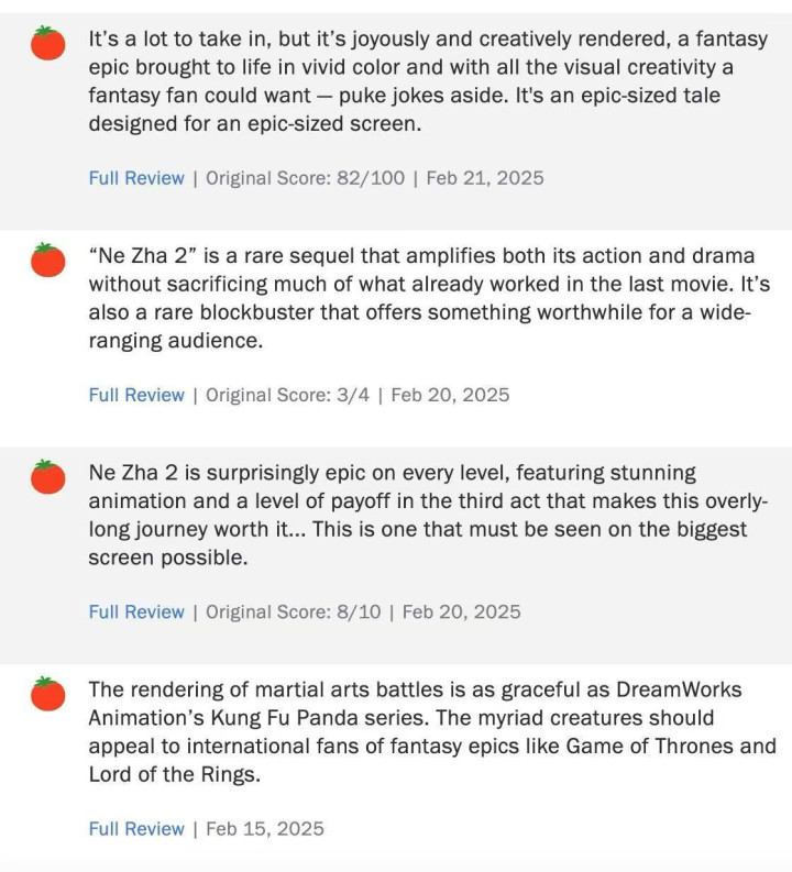 如果说,海外网友的反响是一剂“魔丸”,还得有另一半“灵珠”——海外专业媒体的评论,才能构成完整的《哪吒2》评价体系“混元珠”。